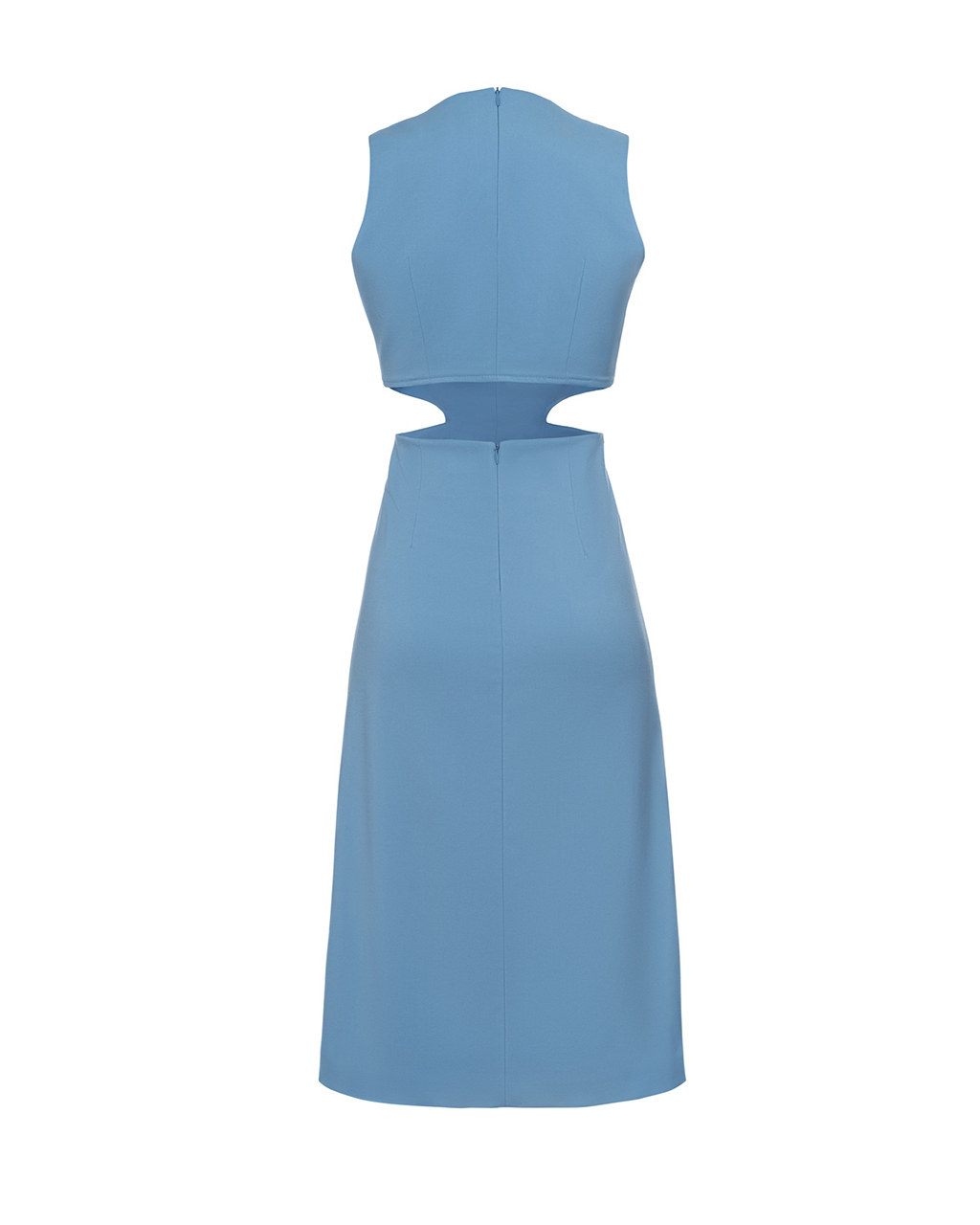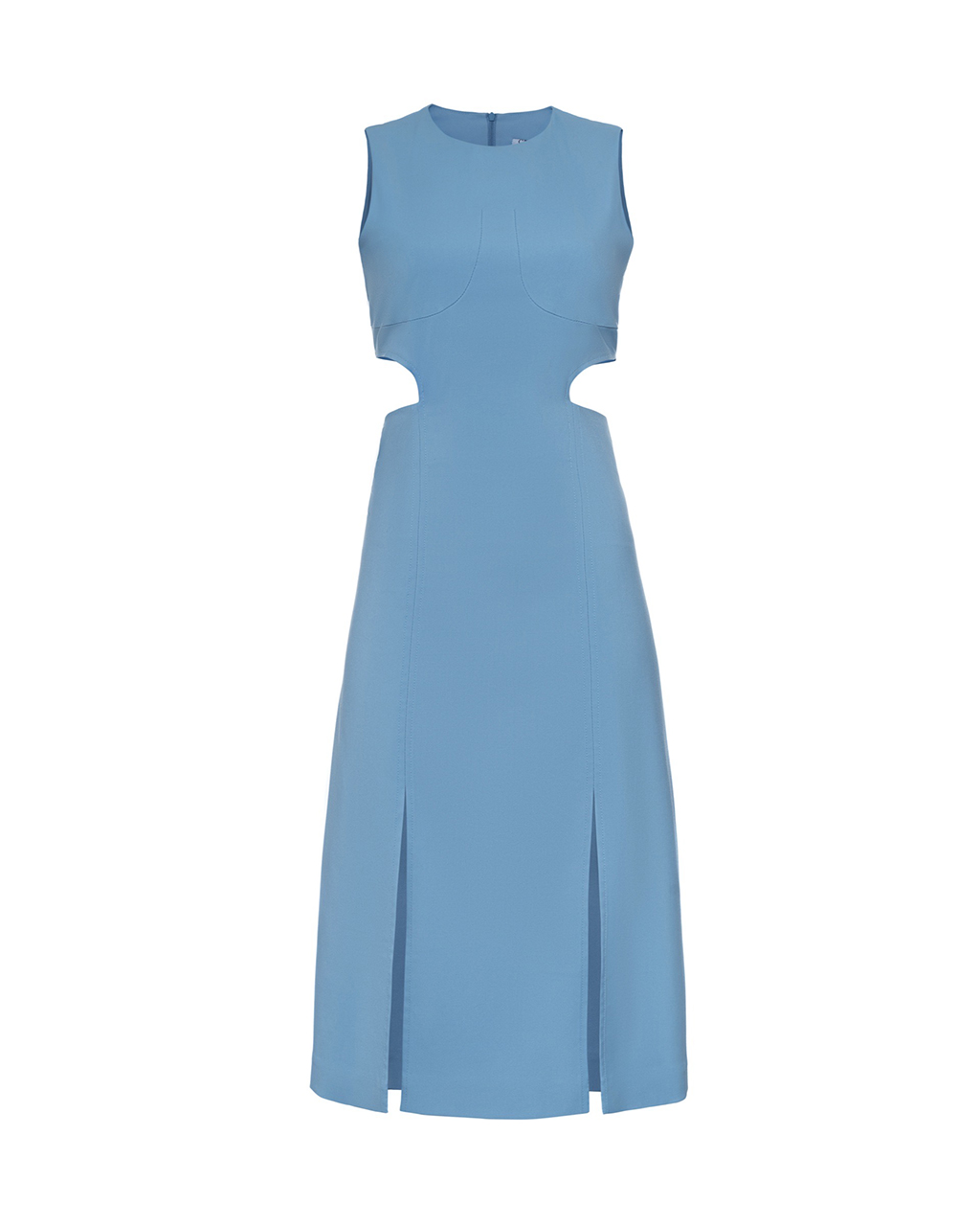 Сукня з рельєфами на грудях, на спідниці розрізи вище лінії коліна, застібки дві – на спинці топа і центральна застібка на спідниці ззаду, довжина нижче колін